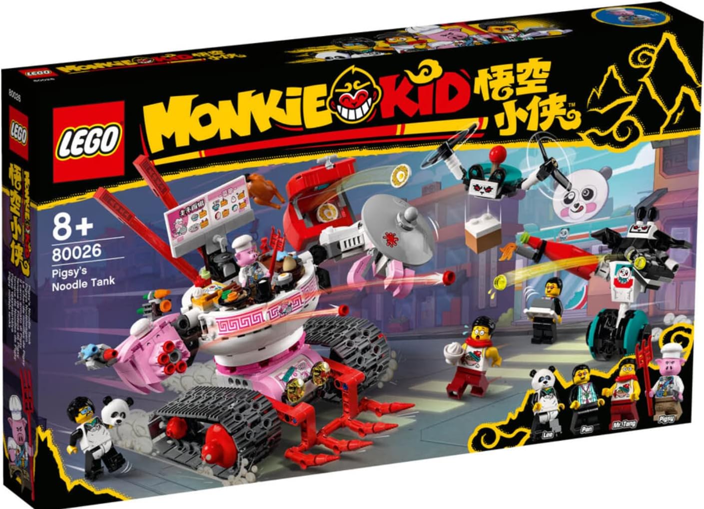 • Çocuklar Pigsy’nin hızlı atıcılı Makarna Tankı, ‘limonata’ fırlatan panda robotu ve yiyecek teslimatı yapan panda insansız hava aracını içeren bu LEGO® Monkie Kid™ oyun setiyle (80026) aksiyon dolu yemek savaşlarının keyfini çıkarabilir.