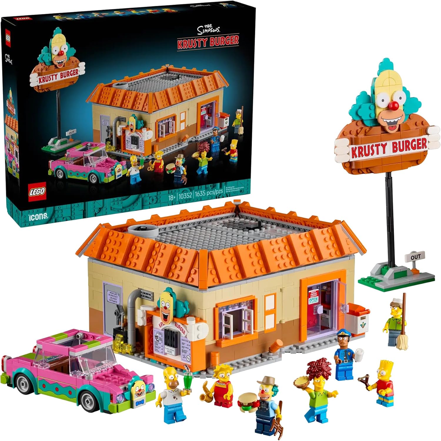 Yetişkinler için LEGO Icons The Simpsons: Krusty Burger (10352) dekoratif ev ve ofis setiyle Springfield'ın efsanevi fast food restoranını canlandırın. Mutfak, oturma alanı, tuvalet ve arabaya servis bölümleriyle Homer’ın vazgeçilmez restoranının detaylı bir modelini yapın. Tüm The Simpsons hayranlarının mutlaka sahip olması gereken bu sette ayrıca bir Krusty Burger tabela direği ve Homer'ın palyaço arabasının bir modeli, ayrıca Homer, Bart ve Lisa Simpson, Farmer Krusty, Sideshow Bob, Squeaky Voiced Teen ve Officer Lou minifigürleri bulunur. Tavanı kaldırıp modeli açarak dondurma makinesi, fritöz ve Buzz Cola makinesinin olduğu mutfak; sosların olduğu 7 koltuklu oturma alanı, top havuzu, yazar kasası ve yukarıda menüsü olan tezgah; tuvalet, lavabo, kırık ayna ve el kurutma makinesi bulunan tuvalet gibi özelliklerle dolup taşan iç kısma erişebilirsiniz. Yetişkinler için LEGO yapım setleri serisini keşfedin. LEGO Builder uygulaması, bu setteki yapım talimatlarının 3 boyutlu bir versiyonunu içerir. Bu set, 1635 parçadan oluşur.; Koleksiyonluk Simpsons yapım seti – Yetişkinler için LEGO Icons The Simpsons: Krusty Burger yapım setiyle Springfield'ın ünlü fast food restoranını canlandırın Kutuda ne var? – The Simpsons: Krusty Burger restoranı, tabela direği, Homer'ın palyaço arabası ve Homer, Bart ve Lisa Simpson, Farmer Krusty, Sideshow Bob, Squeaky Voiced Teen ve Officer Lou minifigürleri Özellikler ve işlevler – Tavanı kaldırıp Krusty Burger modelini açarak mutfak, oturma alanı ve tuvalet içeren son derece ayrıntılı iç mekana erişebilirsiniz Ev ve ofis için eğlenceli dekoratif model – Evinize, ofisinize ya da başka bir mekana biraz The Simpsons havası katın The Simpsons hayranları için LEGO hediyesi – The Simpsons hayranlarının mutlaka sahip olması gereken bu hediyeyle bir doğum gününü veya özel günü kutlayın 3 boyutlu yapım talimatları – Setleri kaydedebileceğiniz, ilerlemenizi takip edebileceğiniz, modelinizi 3 boyutlu yakınlaştırıp döndürebileceğiniz LEGO Builder uygulamasıyla daha önce görülmemiş bir şekilde model inşa etmeye hazırlanın Keşfedecek daha fazla set – Özellikle yetişkinler için tasarlanmış ilham verici ve yaratıcı yapım setleri (ayrı satılır) serisini keşfedin Boyutlar – Bu 1635 parçalı yapım setindeki The Simpsons: Krusty Burger binasının yüksekliği 23 cm, genişliği 24 cm, derinliği 20 cm’dir